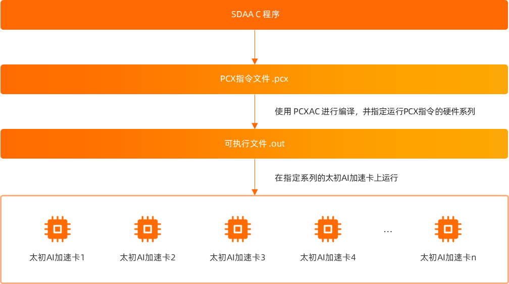 PCXAC是PCX虛擬指令集的編譯系統(tǒng),由太初元碁自主研發(fā),能夠將PCX虛擬指令轉換為指定系列的太初AI加速卡的機器指令,從而屏蔽不同系列硬件的底層差異,即同一版本的PCX指令集可以在太初元碁多種系列的硬件上直接編譯并高效執(zhí)行,將程序與不同系列的硬件解耦。有效解決硬件迭代快,軟件適配成本高的問題。