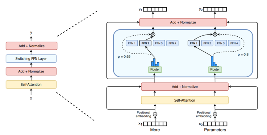 ▲圖0 Switch Transformers[1]論文中的MoE Layer