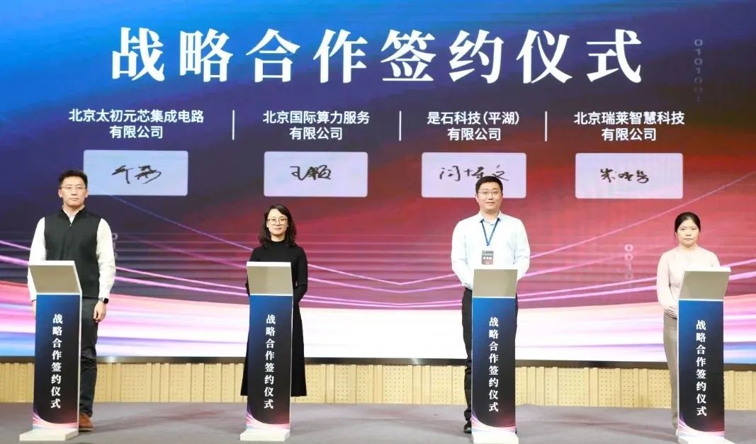 歷彥濤主任到會祝賀,并對太初在推動算力生態(tài)建設(shè),加強產(chǎn)業(yè)鏈上下游聯(lián)動與協(xié)同發(fā)展的相關(guān)舉措表示支持,同時鼓勵各方通力合作,聯(lián)合建設(shè)自主可控應(yīng)用示范項目,讓創(chuàng)新鏈產(chǎn)業(yè)鏈共融共舞。他表示:“北京經(jīng)開區(qū)作為北京高精尖產(chǎn)業(yè)主陣地和創(chuàng)新驅(qū)動發(fā)展的前沿陣地,始終堅定不移打造自主可控產(chǎn)業(yè)鏈供應(yīng)鏈,構(gòu)筑全國領(lǐng)先的集成電路、信息技術(shù)應(yīng)用創(chuàng)新產(chǎn)業(yè)集群。未來,將繼續(xù)加強集成電路產(chǎn)業(yè)資源組織,打造更加開放的產(chǎn)業(yè)創(chuàng)新平臺和更加完善的產(chǎn)業(yè)服務(wù)體系,在新的一年里開好局、起好步,推動區(qū)域集成電路產(chǎn)業(yè)跑出發(fā)展加速度。”