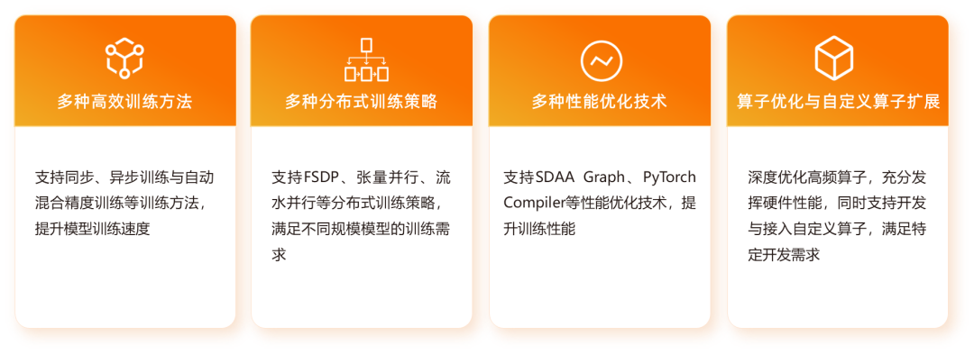 算子優(yōu)化與自定義算子擴展:深度優(yōu)化高頻算子,如:FlashAttention、RotaryEmbedding等,充分發(fā)揮硬件性能,同時支持開發(fā)與接入自定義算子,滿足特定開發(fā)需求。
